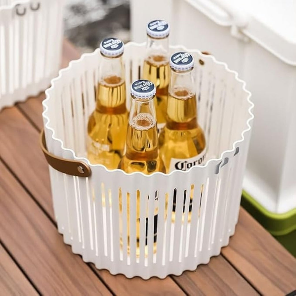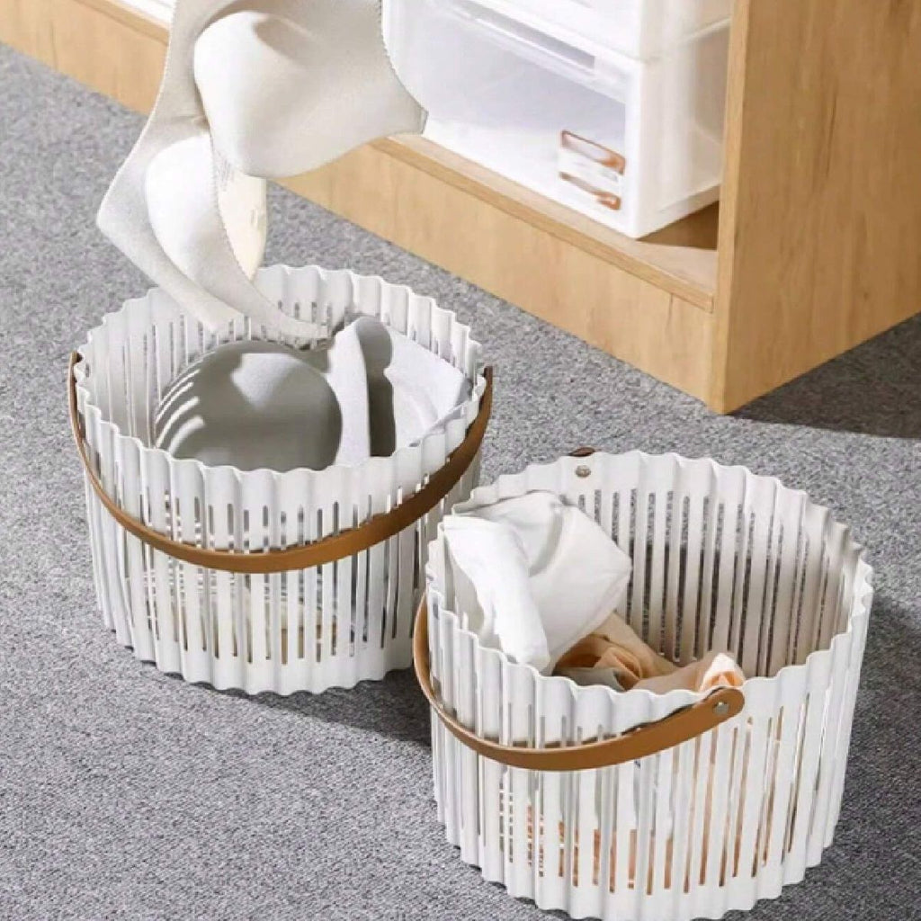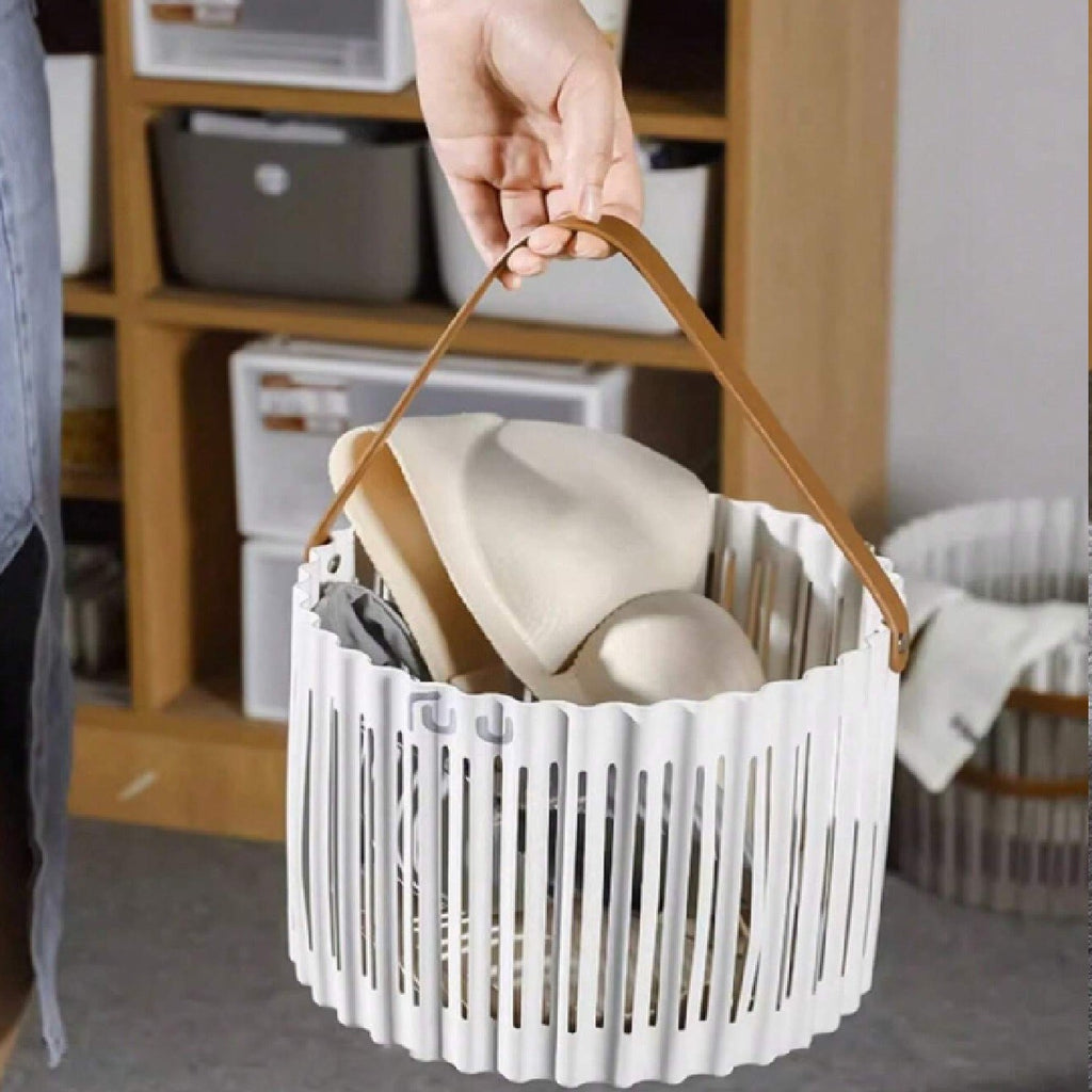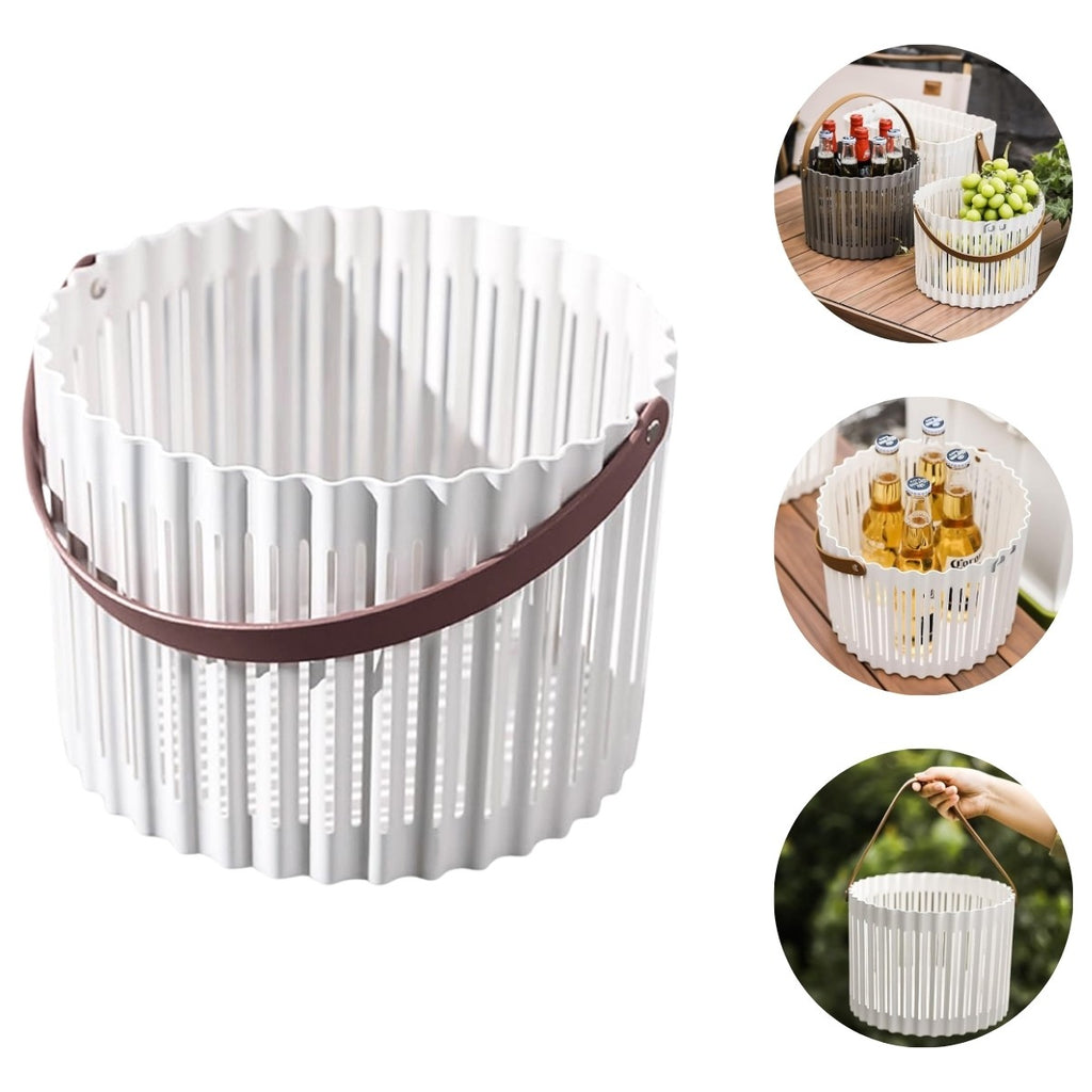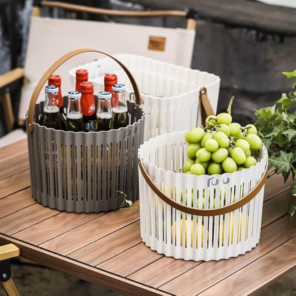 Cesta Redonda Organizadora de Plástico com Alça de Couro – Praticidade e Elegância para o Seu Lar