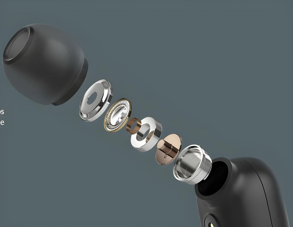 Através do botão físico dos fones, é possível pausar e trocar a música, receber ligações e ativar o assistente de voz. Apresenta cancelamento de ruídos em chamadas.